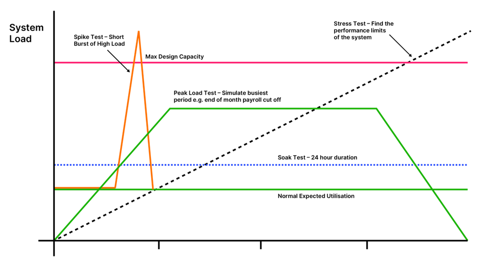 Ilustrasi Grafik Perbandingan antara Load Test, Stress Test dan Spike Test