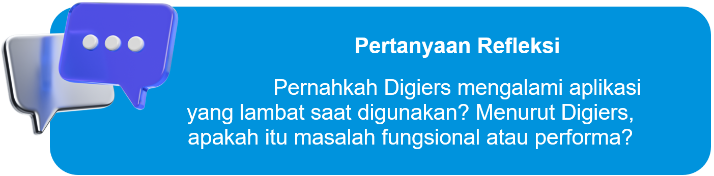 Di sinilah pentingnya memahami berbagai tipe dan proses pengujian, karena tidak semua pengujian memiliki tujuan atau pendekatan yang sama. Sebagai contoh, pengujian fungsional bertujuan untuk memastikan fitur berjalan sesuai dengan kebutuhan yang sudah ditentukan, sedangkan pengujian non-fungsional, seperti performance testing, berfokus pada bagaimana sistem bekerja ketika dihadapkan pada beban yang berat.