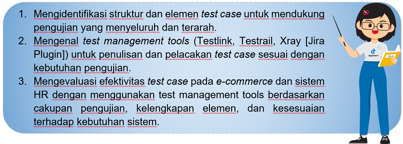 Dalam dunia QA, test case merupakan salah satu alat kerja yang sangat penting. Test case dapat diibaratkan seperti resep bagi seorang koki, yaitu dokumen yang berisi panduan langkah demi langkah untuk memastikan suatu bagian dari perangkat lunak berfungsi sesuai harapan. Kemampuan menulis test case yang efektif dan mudah dijalankan adalah keterampilan dasar yang wajib dimiliki oleh QA, baik yang bekerja secara manual maupun otomatisasi.