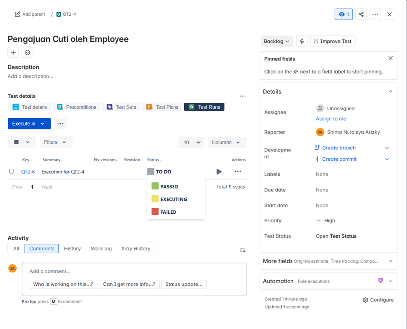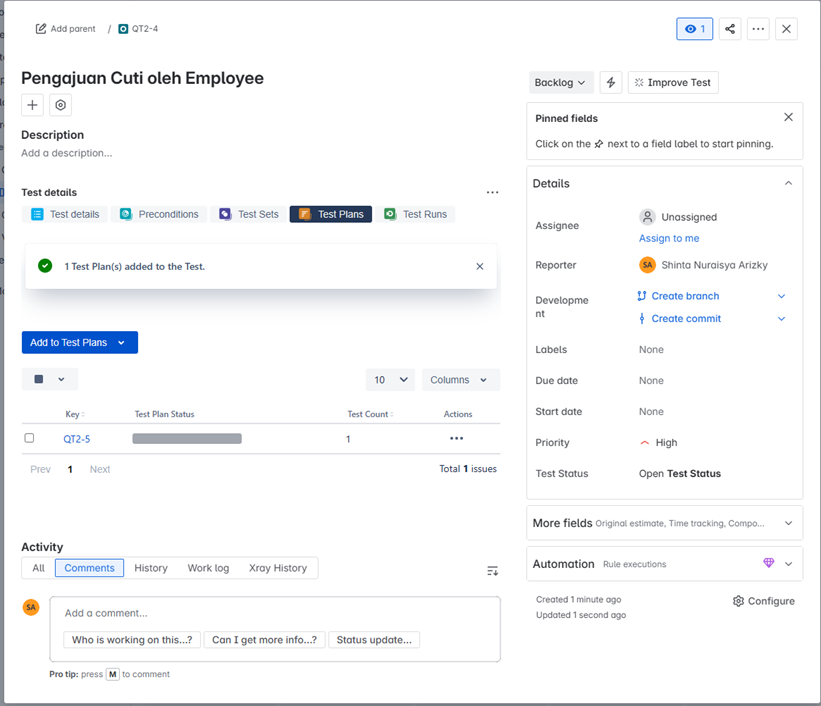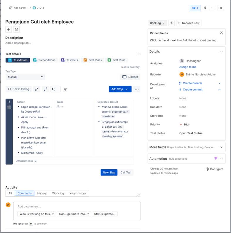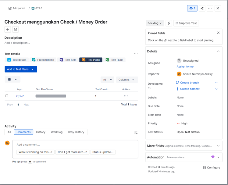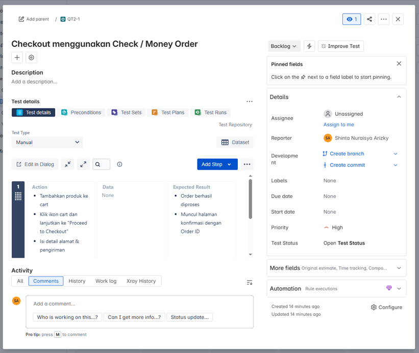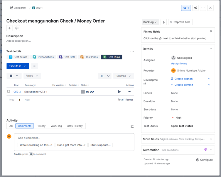 QT2-1 (di-generate otomatis saat buat issue di Jira) |
