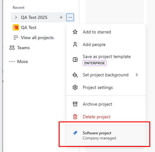 ● Masuk ke project yang telah dibuat sebelumnya, misal QA Test 2025