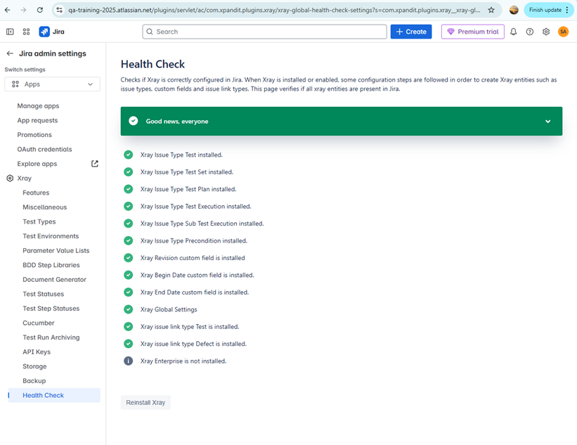 Pastikan bahwa Xray tidak ada error atau issue dari hasil Health Check.