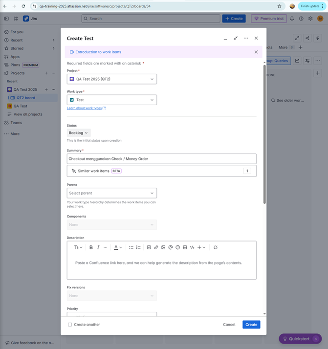 - Login ke Jira (misal: https://qa-training-2025.atlassian.net)