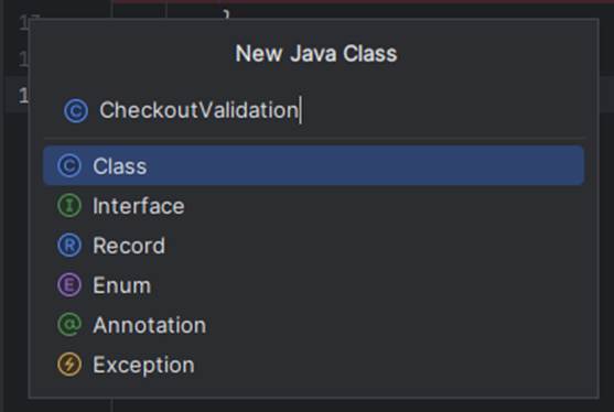 2. Masukkan nama file, misalnya: CheckoutValidation.