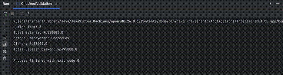 1. Klik ikon ▶️ di samping baris public class CheckoutValidation.