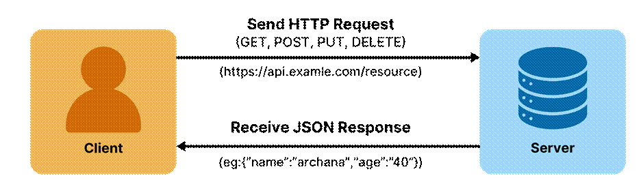 Pada dasarnya, cara kerja REST API mirip seperti saat kita menjelajahi internet menggunakan browser. Ketika kita mengetik alamat web atau mengklik tautan, browser akan menghubungi server untuk meminta halaman tertentu. Demikian pula, dalam sistem REST API, klien (biasanya berupa frontend seperti aplikasi mobile atau website) akan menghubungi server untuk meminta sumber daya (resource), seperti data pengguna, daftar produk, atau riwayat transaksi.