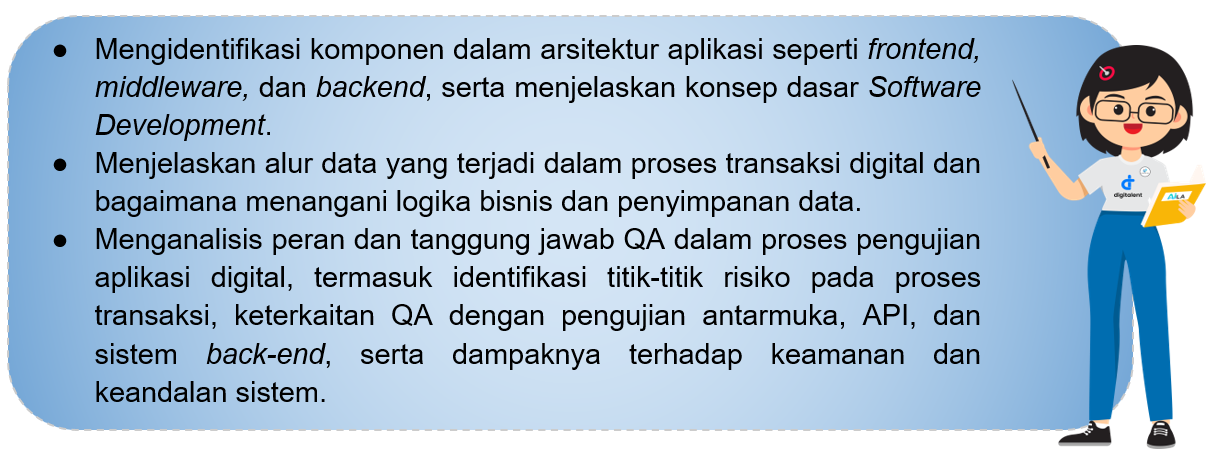 Topik ini penting untuk membuka wawasan dasar tentang bagaimana sebuah aplikasi dibangun, komunikasi antara frontend dan backend, hingga pemanggilan API (Application Programming Interface) sehingga QA bisa lebih kontekstual dalam merancang dan melakukan pengujian.
