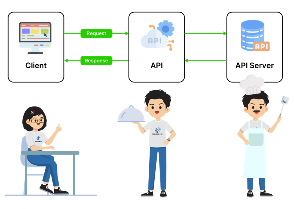 API (Application Programming Interface) adalah kumpulan protokol atau aturan yang memungkinkan berbagai komponen perangkat lunak saling berkomunikasi dan bertukar data. Dalam praktiknya, API digunakan oleh developer untuk menghubungkan bagian-bagian kecil dari kode menjadi satu kesatuan sistem atau aplikasi yang lebih kompleks.
