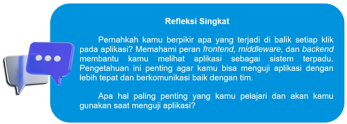 Sebelum memulai pembelajaran pada topik ini, mari luangkan waktu sejenak untuk merefleksikan pengalaman kamu saat menggunakan aplikasi. Pernahkah kamu berpikir, proses apa saja yang terjadi di balik setiap klik yang kamu lakukan?