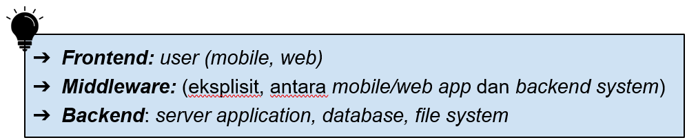 Aplikasi masa kini umumnya dibangun dengan menggunakan arsitektur multi lapis (multi layered) untuk mendukung skalabilitas, keamanan, dan kemudahan pemeliharaan. Salah satu bentuk arsitektur yang paling umum terdiri atas tiga lapisan utama: